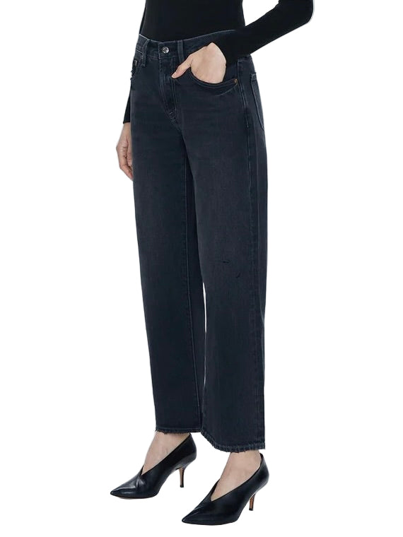 The best-selling jean that understands proportions. Lexi sits at the perfect mid-rise with our signature bowed straight leg, a subtle curve at the knee that creates dimension without effort. Finished with a 29" inseam, the sculpted silhouette tapers to a cropped ankle with a clean hem. Crafted from our rigid denim in Mercury, a dark wash.