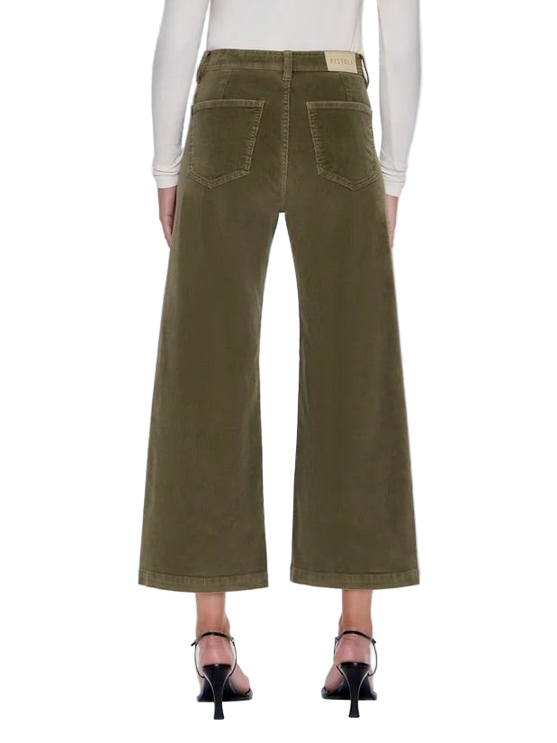 The wide leg that changes everything. Penny sits at a high rise with an ultra wide leg silhouette and cropped 27" inseam. The relaxed wide leg flows beautifully while the high rise anchors the proportions perfectly. Crafted from our comfort stretch fabric in Sequoia, a deep olive green tone.