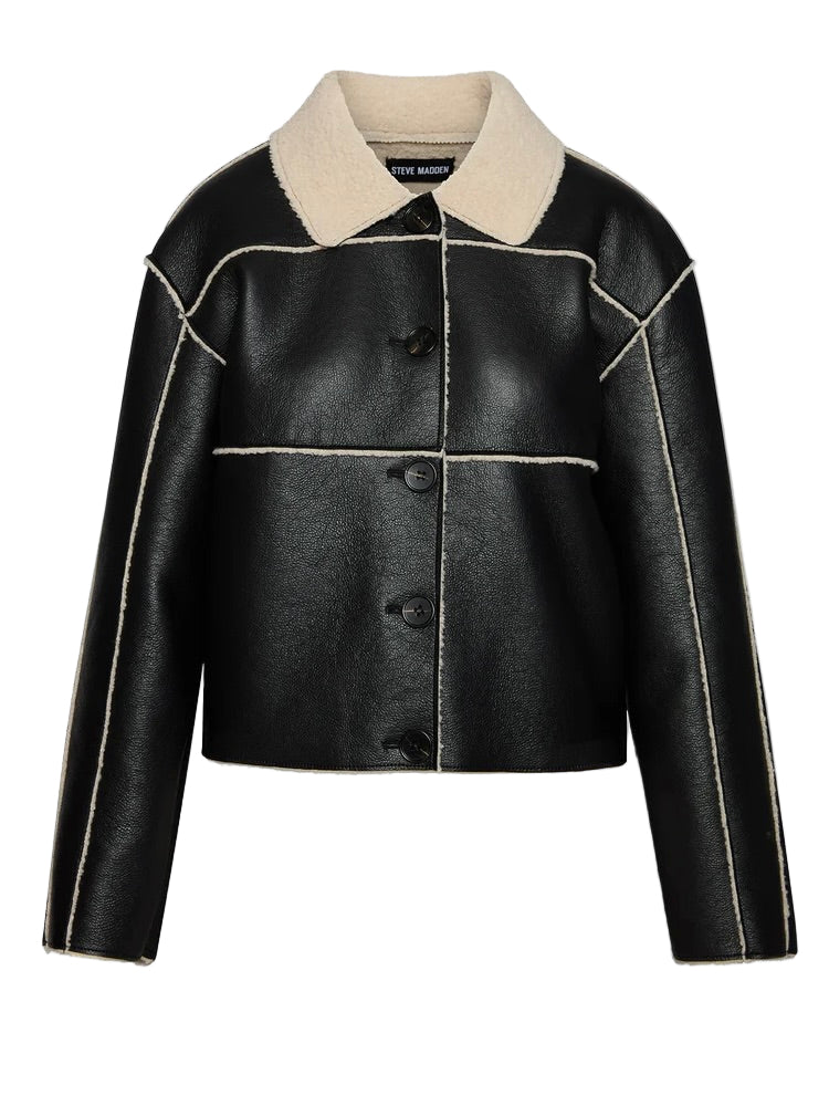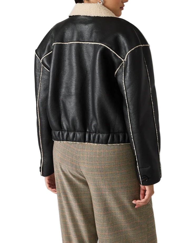 The TILIA coat combines sophisticated design with practical warmth. Featuring a long-sleeved silhouette and a luxurious faux fur collar, this faux leather jacket offers both style and comfort. Its button-up closure ensures a secure fit while enhancing the coat’s sleek, polished look.