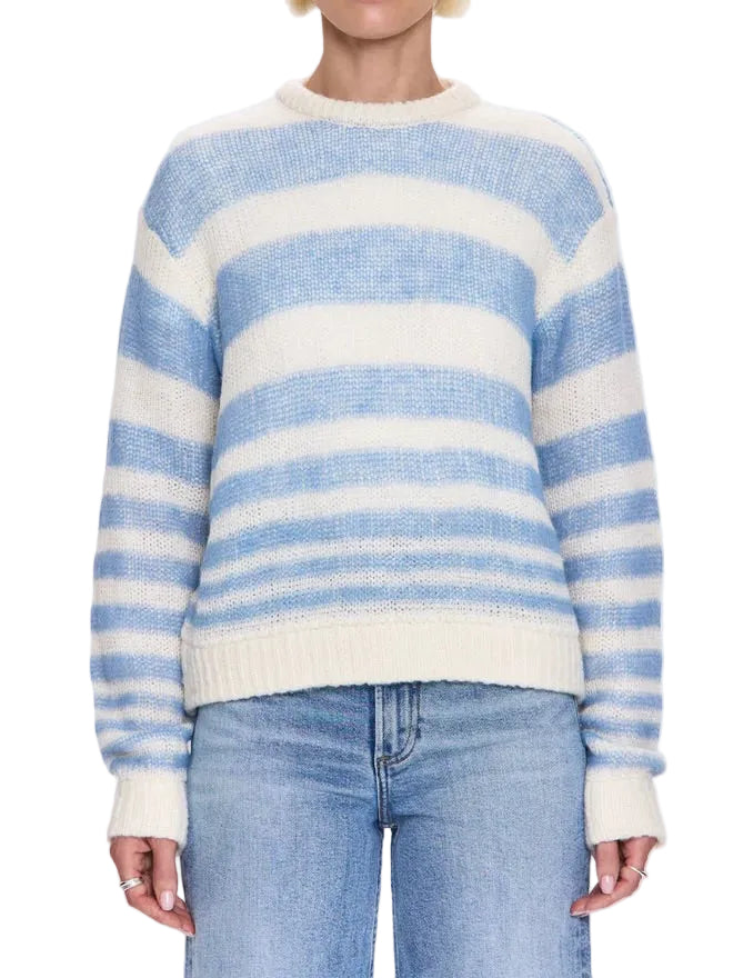 Playful meets polished in the Moa Sweater. Designed with a relaxed crew neckline and tactile bubble-knit texture, it blends cozy comfort with refined ease. The soft structure adds dimension, making it an effortless choice for layering or standing alone. Blue Gradient Stripe introduces a fresh tonal mix—cool, airy, and quietly striking.